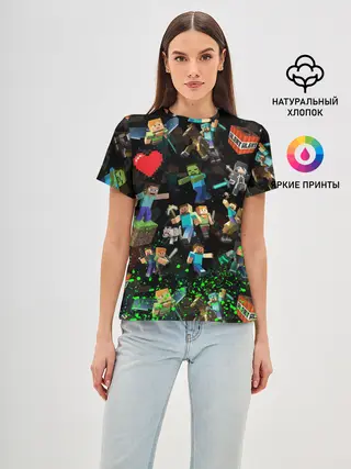 Женская базовая футболка / МАЙНКРАФТ ПАТТЕРН ГЕРОИ ИГРЫ