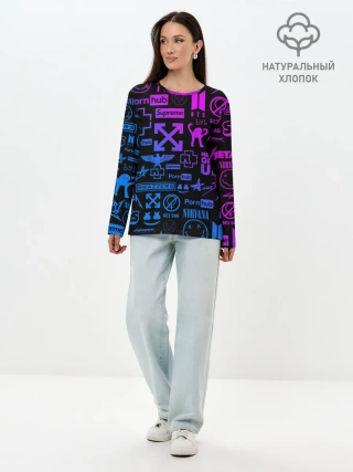 Лонгслив женский. Хлопок / ЛУЧШИЕ ПРИНТЫ LOGOBOMBING
