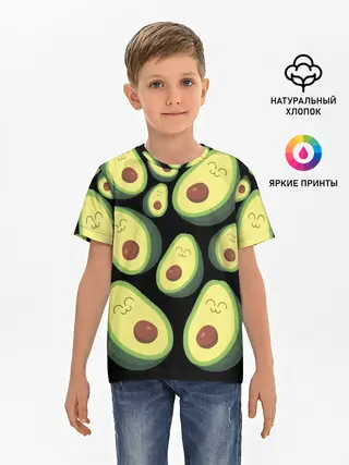 Детская базовая футболка / Авокадо паттерн