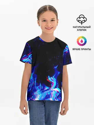 Детская базовая футболка / СИНИЙ ОГОНЬ ГЛИТЧ | BLUE FIRE GLITCH