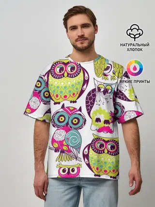 Мужская футболка оверсайз / МУДРЫЕ СОВЫ | WISE OWLS