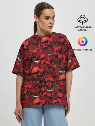Женская футболка оверсайз / Красный череп