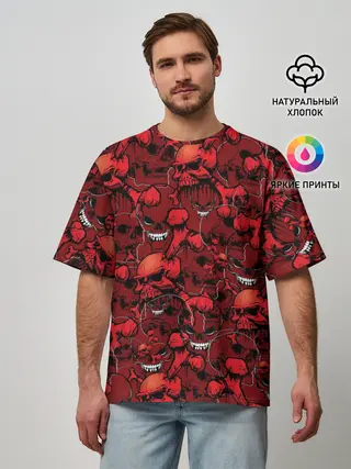 Мужская футболка оверсайз / Красный череп