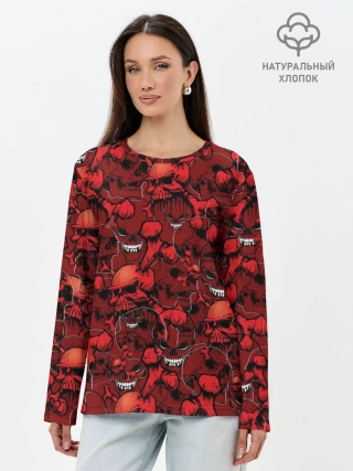 Лонгслив женский. Хлопок / Красный череп