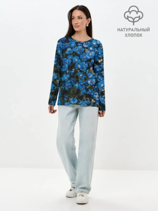 Лонгслив женский. Хлопок / Поле синих цветов фиалки лето