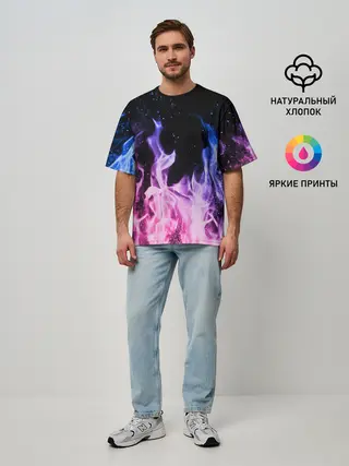 Мужская футболка оверсайз / НЕОНОВЫЙ ОГОНЬ