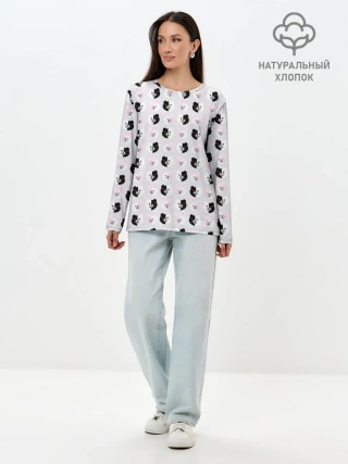 Лонгслив женский. Хлопок / Паттерн из монокум