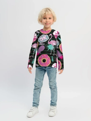 Детский лонгслив / Пончики, мопсы и фламинго.
