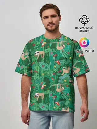 Мужская футболка оверсайз / Ленивцы
