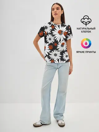 Женская базовая футболка / Божьи коровки на ромашках